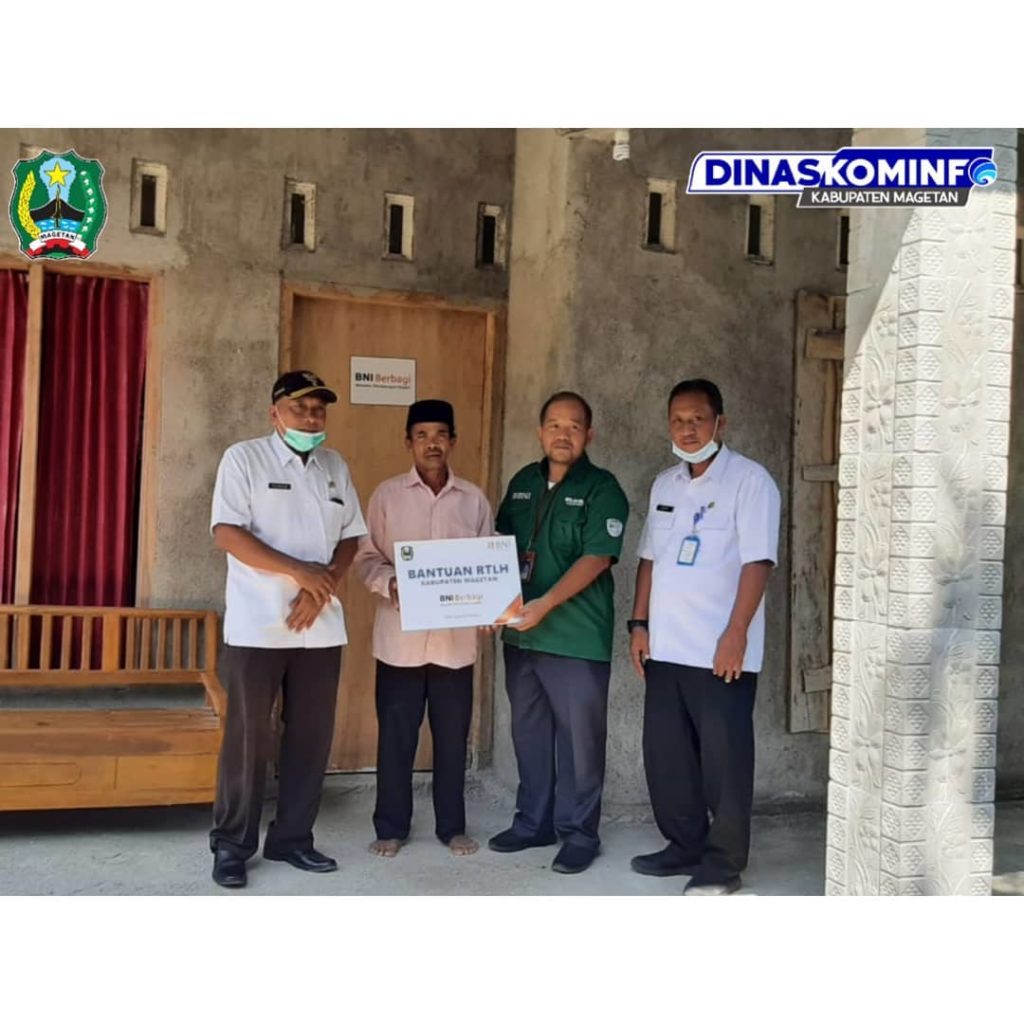 Melalui Dinas Perumahan dan Kawasan Permukiman Magetan, Rabu (9/6) telah diserahkan bantuan Corporate Social Responsibility (CSR) secara simbolis senilai Rp. 111.725.470,00 kepada 6 penerima bantuan. Penerima bantuan CSR RTLH terdiri dari satu warga Desa Milangasri Kecamatan Panekan dan lima warga Desa Sundul Kecamatan Parang. Penyerahan secara simbolis dilakukan oleh Kepala Disperkim Sudiro dan Daud Panggeso Kepala BNI Kantor Cabang Pembantu Magetan